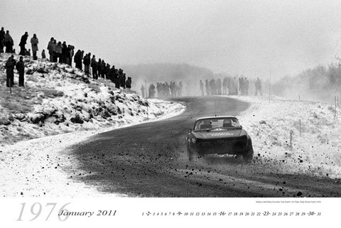 Najmniejszy kalendarz, to biurkowy "History meets the present". idealnie nadaje się do postawienia na biurku. W stojaku wykonanym z przezroczystego tworzywa znajdują się 54 karty, każda ze zdjęciem po obu stronach. Dobór fotografii to sprawdzona już przez McKleina metoda. Po jednej stronie każdej karty znajduje się ujęcie z historyczną rajdówką , natomiast po drugiej - współczesnego auta z sezonu 2010.